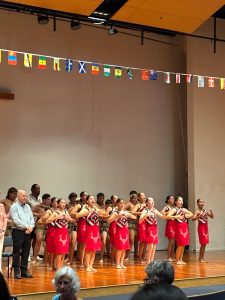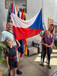 Ale že bychom se úplně „nikam nehnuli“, to se také říci nedá. Více odpočíváme odpoledne, ale postupně zjišťujeme, že většina únavy není ani tak v těle, jako v hlavě. Přeci jenom, první zkušenost s nemocnicí, neznámá situace a nové prostředí dalo zabrat. Ale teď je potřeba se s tím poprat. A když paní učitelka chválí, chválí a chválí, světe div se – nebo tady už možná se ani divit nemusíme, ono to zabírá. Anežka je vyléčená. Proč hledat chyby, když můžeme hledat pozitiva. Proč si kazit den tím, co kdyby.  A tak ve středu vyrážíme s mezinárodní skupinkou na vítání všech studentů z nejrůznějších zemí. My si připadáme jako na olympiádě, fotíme se s vlajkou a na dálku tak fandíme Čechům. A o co více jsou proslovy řečníků nudné pro ty nejměnší, o to víc jim pak chutná připravené občerstvení a zajímají je maorské, čínské i japonské tance. Česká skupina tu není tak početná, musíme to do příště vylepšit a nějaký tanec také nacvičit😊