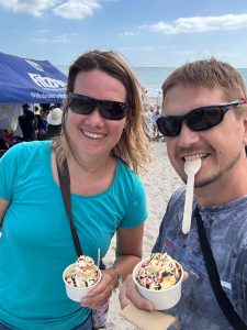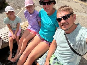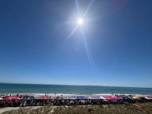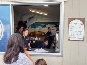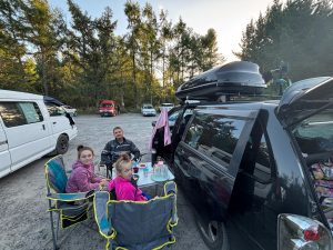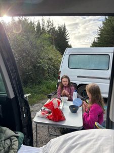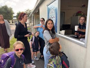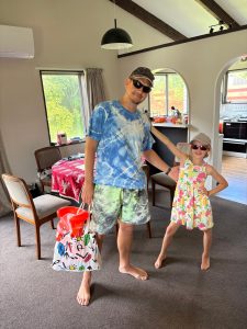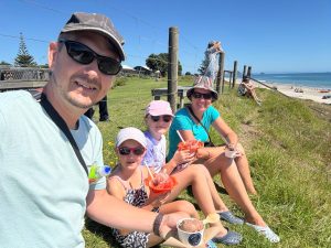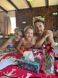 Terezka opět najela na režim škola, pláž, koupačka a teď k němu přidala i tenis. Měla neskutečnou radost, když vyhrála soutež, kterou v rámci kroužku pořádali. Anežka ještě s koupačkou čeká na další týden, ale ve škole hledá příležitosti, kde se dá. A tak po tom, co na volejbal sice dorazíme, ale o týden dířve – no i takové úskalí má angličtina 😊 Tak další den, kloubouk dolů, si sama domluví brigádu. A tak my, jako pyšní rodiče, vyrážíme hned po ránu do obchodu a hádejte, kdo nám prodává kávu a čokoládu… Mezinárodní zážitek je to bez pochyby pro všechny.
