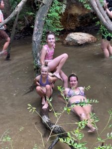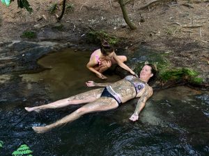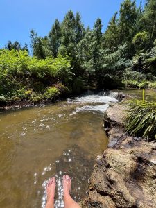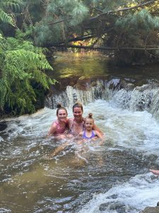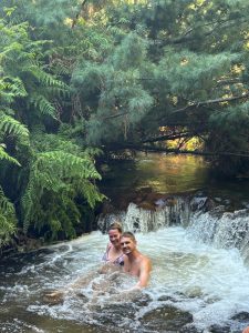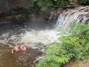 Následně jsme zamířili na moje nejoblíbenější místo nového Zélandu. Jestli bych přestěhovala jednu věc, tak by to byla tato – Kerosene Creek. Řeka, nebo spíš takový potok, ale termální, tedy teplý…. A cákali se a cákali se a pokud se nerozpustili, tak tam leží doteď 😊