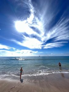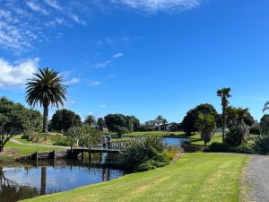Jinak jsme se prošli s Tomem parkem Te Ara O Wairakei – rozléhlá se skrz velou část Papamoa oblasti, ve které bydlíme. My jsme zvládli část s meandruící řekou a nádhernými palmami –tohle byla spíš taková zdejší „milionářská čtvrť“ a opravdu ty baráčky nevypadaly špatně 😊 Vraceli jsme se podél pláže, dopoledne, kdy by „normální“ člověk pracoval. My jsme si udělali volno a světe div se, potkáváme asi stejný počet lidí, jako odpoledne😊 Že by to bylo jinak a ti normální jsou oni? No těžko říct, ale co víc nás zaujalo, nejen, že se všichni usmívají a nestresují se tím, že by měli třeba možná pracovat, ale jak by řekl básník, tady se snad nestresují ani ti ptáci. Nechají se klidně zalívat mořskou vlnou, oklepou se a pochodují si klidně dál. Zkrátka no stress. A vlastně proč ne? A ti lidé kolem? – Vybavují se mi slova Pavla Koláře: „Blahobyt oslabuje naši schopnost snášet stres, což je jiný výraz pro zátěž.“ Tihle lidé kolem toho možná tolik nemají, ale vždyť oni to nepotřebují? To co chceme a kam se někdy necháme tlačit se nemusí tomu, co potřebujeme. A stojí pak ten stres za to? Na to si musí najít odpovědět každý sám….