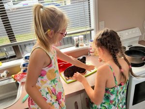 Každopádně Terezka si ve školce užila karneval, napekla kamarádům beránka a jak jinak, nemohla chybět ani návšteva našich nových čtyřnohých kamarádů 😊 A nebudeme si nic nalhávat, motivace stihnout návštěvu kočičkek byla dost silná i na pochopení násobení a dělení dvě a třema během jednoho dopoledne – jinými slovy, projednou jsme nechali zvítězit efektivitu nad vyučovacími metodami😊