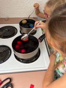 Tento týden se nesl ve znamení Velikonoc. Tady je tento svátek braný jako dny volna – ve škole od čtvrtka do úterka a vlastně jediné, co s je tu s touto tradicí spojené, je hledání vajíček venku na zahradě, které přinese Velikonoční zajíček. To jsme jsme samozřejmě nemohli minout a že nám jich tam schoval požehnaně. Ale abychom Velikonocím udělali za dost, přestavili jsme tu alespoň trochu naše tradice. A je pravdou, že dát za pomlázku vajíčko, jak zpívá Pokáč ve své rychlovce, jim opravdu přišlo zvláštní maličko😊