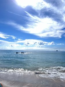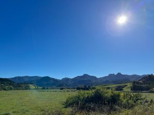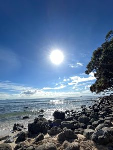 Na cestě zpět jsme pak obdivovali ještě vyhlídku Taroia summit – procházka na necelé dvě hoďky na vrchol, ale větší zážitek jsme měli shora. Přemýšeli jsme, proč jsou tu za slunného dne pláže tak prázdné, i když vypadají útulně a vysvětlení přišlo velmi záhy. Paní, které se z vyhlídky vraceli, tak nás upozornili, ať se nezapomeneme pochochat výhledem na žraloky, že jsou dneska krásně vidět 😊
